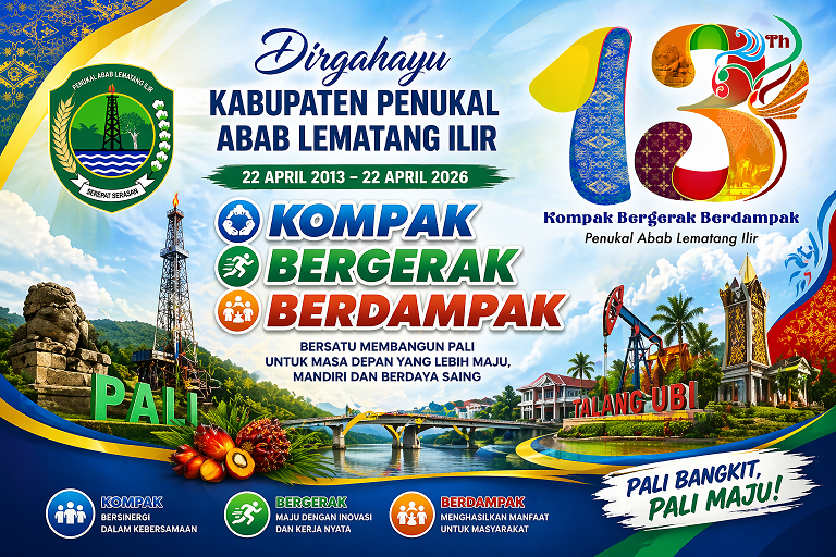 Hari Ulang Tahun ke-13 Kabupaten Penukal Abab Lematang Ilir (PALI) pada 22 April 2026, sejatinya bukan sekadar seremoni tahunan. Ia adalah cermin perjalanan daerah muda yang sedang mencari bentuk terbaiknya. Tema yang diusung tahun ini “Kompak, Bergerak, Berdampak”, bukan muncul tanpa alasan. Ia lahir dari kebutuhan mendesak: mempercepat pembangunan sekaligus menjawab berbagai dinamika sosial-politik yang masih mengemuka.