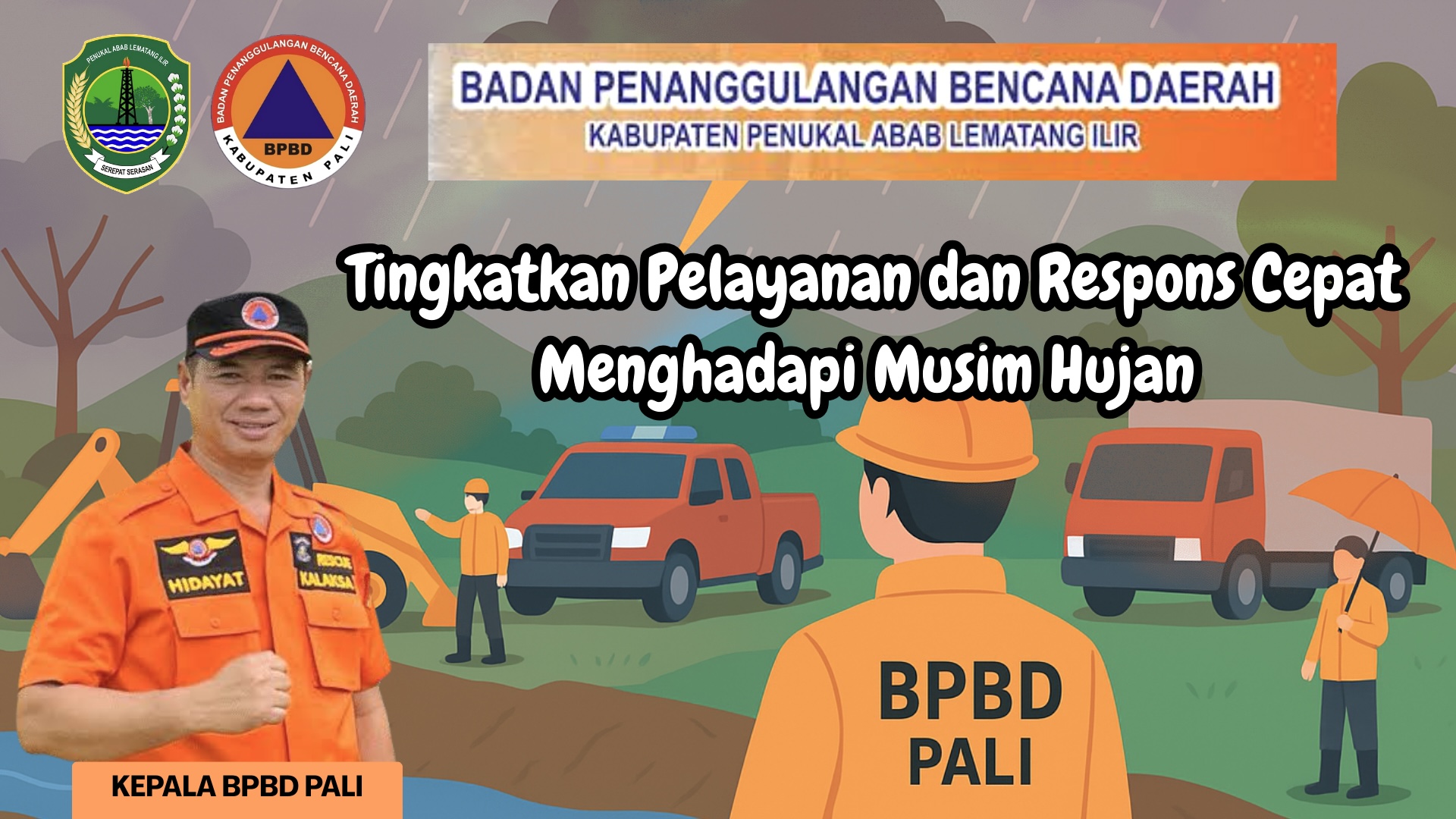 Bupati PALI Asgianto, S.T., bersama Wakil Bupati Iwan Tuaji, S.H., memberikan dukungan penuh terhadap upaya peningkatan pelayanan yang dilakukan BPBD. Bupati menyatakan bahwa langkah cepat dan kesiapsiagaan petugas sangat penting dalam mencegah kerugian & Keselamatan saat musim hujan.